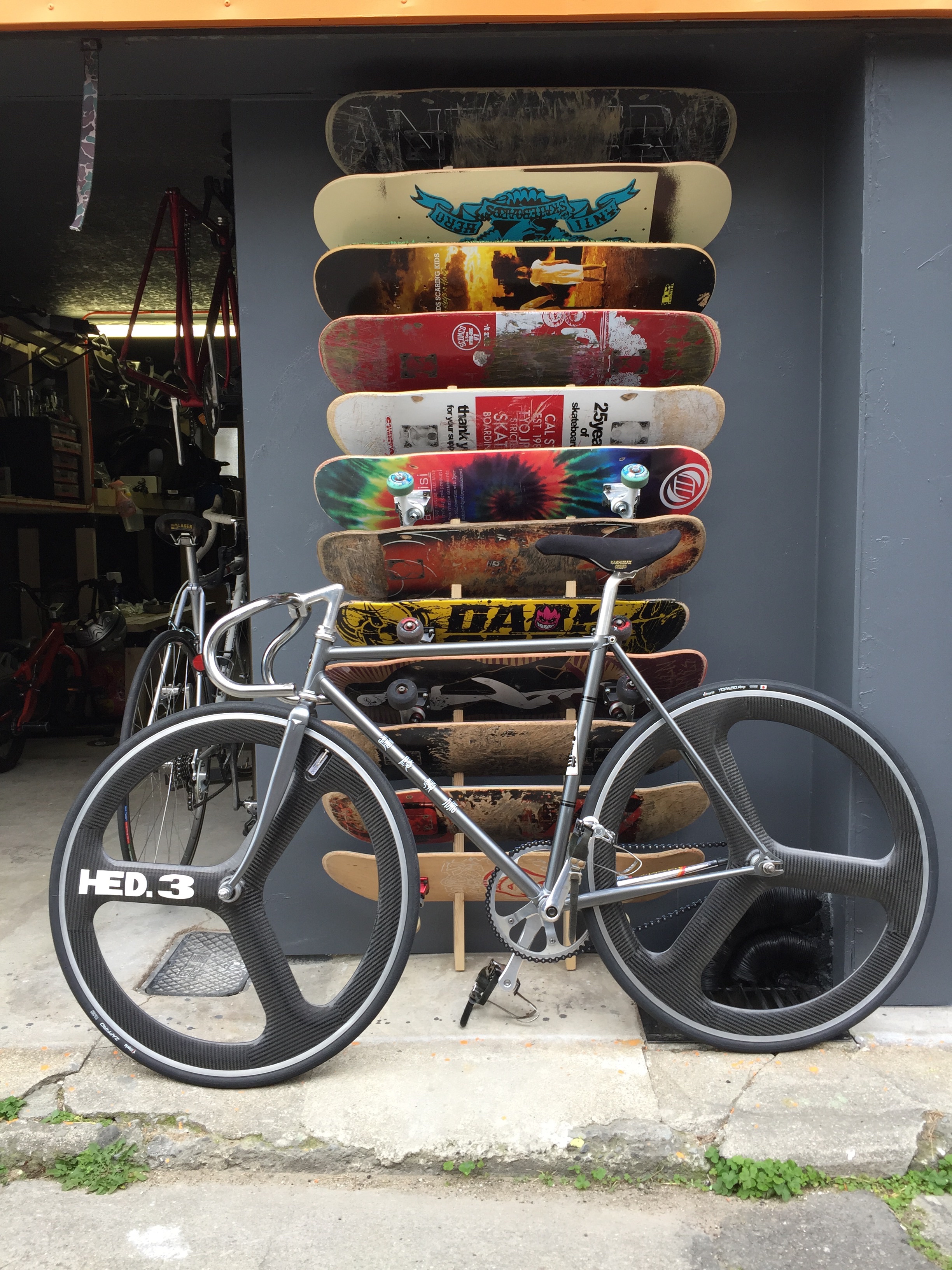 僕の住んでいた近所にはそれこそ日本で一番速いベアリング加工を施す魔法のような製品や技術を持った素晴らしいショップや小さなピストパーツショップから始まり、独自にペインターまで抱えカスタムバイシクルを提供しているショップもあります。